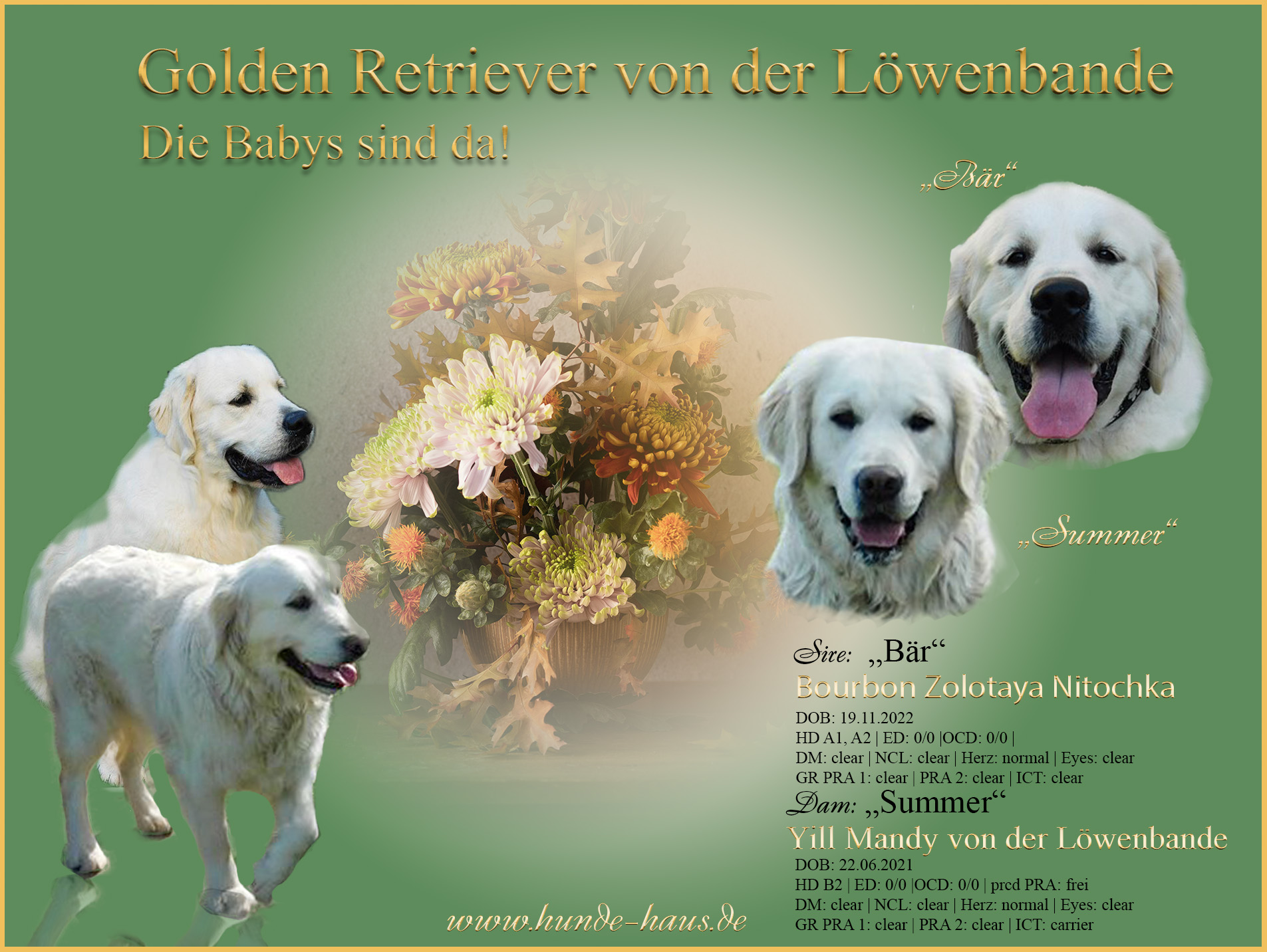 Wir freuen uns über die Babys von Summer und Bär, die am Sonntag, dem 12.10. zur Welt kamen